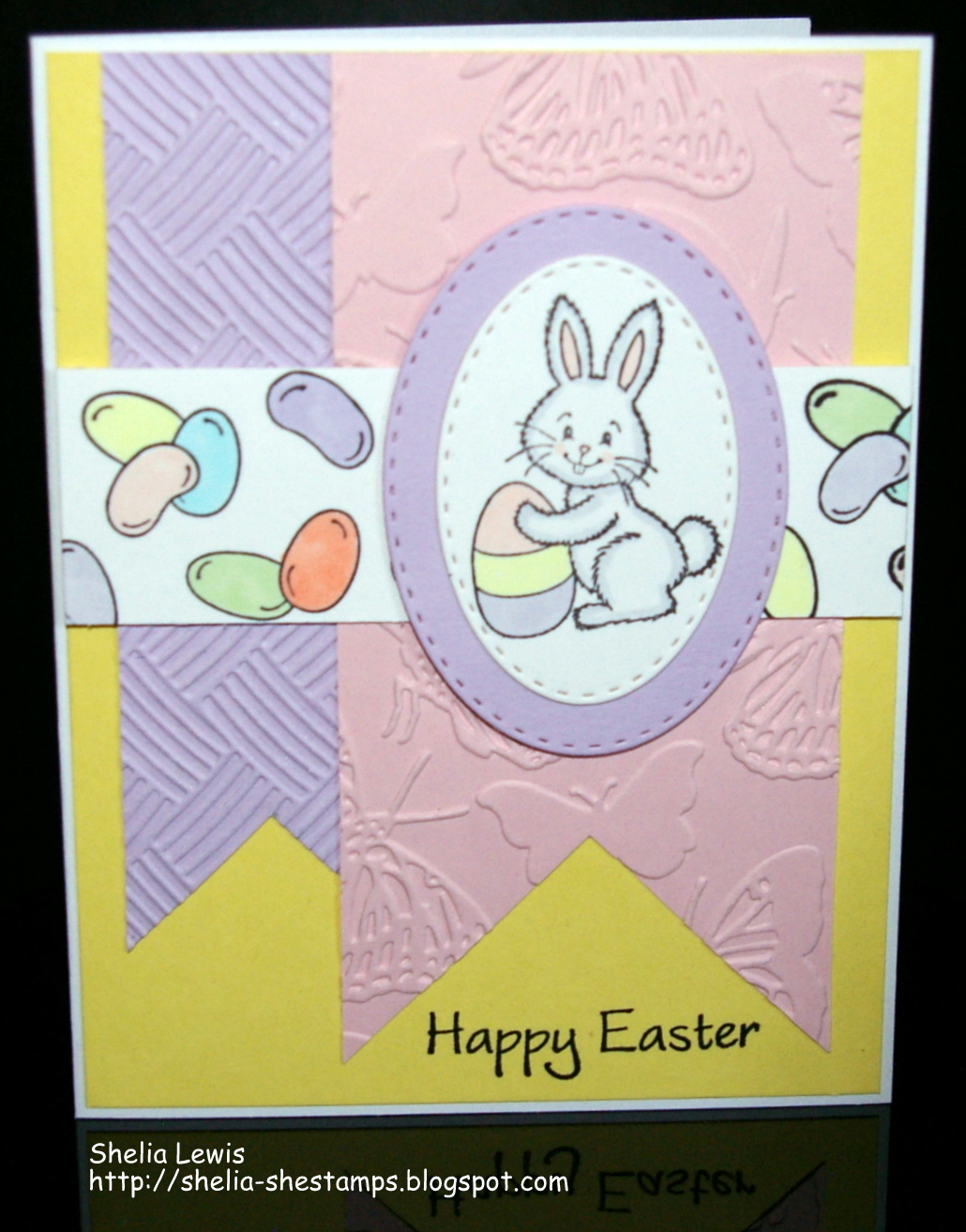 (...use any image, die cut, paper, technique..but have something that hops, skips or jumps (or leaps) on it..think bunnies, frogs, birds, kids..you get the idea)