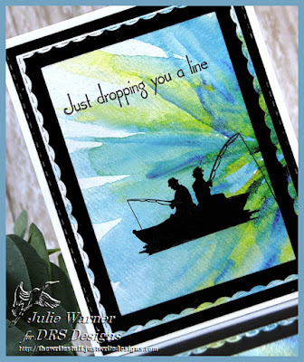 Your bg is so beautiful Julie! The fishing guys go great with that blue and green and I love the inside too. Fantastic guy card!